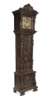 in the 'Renaissance Revival' taste, the three train movement chiming on a nest of eight graduated bells and four graduated gongs with hour repeater, the floral engraved brass dial with silvered roman chapter ring and maker's plaque, the pediment carved with cupids flanking a cartouche above a frieze supported by a pair of bearded atlantes with carved claw feet, the case profusely carved with shells, strapwork and birds around a front panel decorated with central female mask above a grotesque satyr mask flanked by monopaedic caryatid uprights each having festoon-carved claw feet, the projecting leaf carved lower apron on lion mask carved scrolling pilasters and shell carved feet