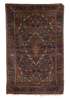 each with indigo field with central red and camel medallion suspending pendants, similar spandrels, within indigo floral vine border between cream and skittle bands (2)