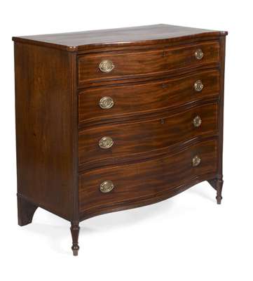 A late George III period mahogany and boxwood strung serpentine chest