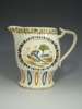 of ovoid form, with moulded polychrome decoration, with a foliate band to the rim, opposed oval panels containing exotic birds, framed by leaves, above a band of stiff leaf and stylised floral decoration
