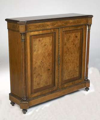 A 19th century French walnut, amaranth crossbanded and arabesque inlaid side cabinet