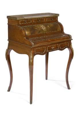 A late 19th century rosewood and floral marquetry bureau des dames