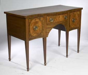 A George III period mahogany and crossbanded serpentine sideboard