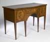 the frieze drawer flanked by a cellarete drawer and cupboard door, on tapering legs with spade feet, the whole decorated with boxwood lines