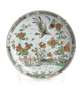 decorated with a band of flowers interspersed with oval panels painted with birds, fish and lobster, the well decorated with two phoenix, one standing, one flying, a fence, and large chrysanthemum heads, the exterior decorated with a geometric band and flower sprigs