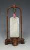 the pendant of rectangular form, carved with a tree, hanging with other hardstones in a carved hardwood stand