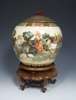 decorated with a continuous figural frieze, signed to base, later hardwood and stand