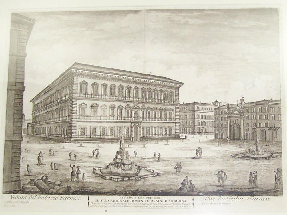 engraving by Freicenet, Rome, circa 1760; and seven further companion scenes, most of palazzi in Rome, by the same hand, each framed and glazed (8)
