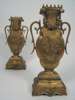 the rectangular gallleried rims with scrolled corners draped with festoons above quatrefoil shaped bodies with arabesque handles decorated with 'cut-out' giltmetal figures of hunters in 16th century attire, with their hounds, before alpine landscapes, on stepped and foliate engraved cut-plinth bases (2)