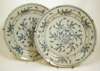 each blue painted with unusual decoration of three concentric double rings and meandering fruiting foliage, each with blue painted script mark on underside (2)