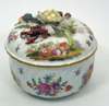 with moulded lobster finial, the cover decorated with moulded mushrooms, beans and cauliflower, and painted with alternating scenes of figure groups and flowers, the body similarly painted