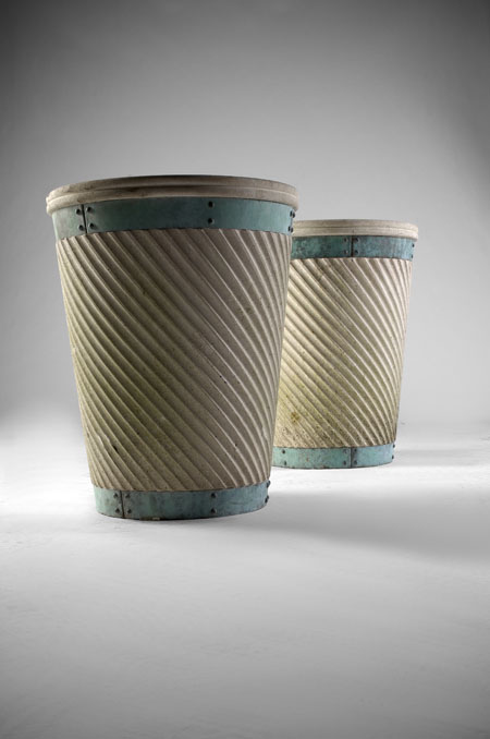 of spirally reeded tapering form, each with a bronze bound frieze and base, modern (2)