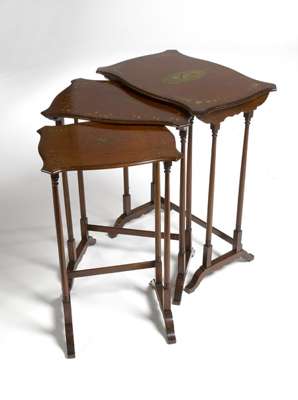 A nest of three Edwardian floral painted mahogany tables