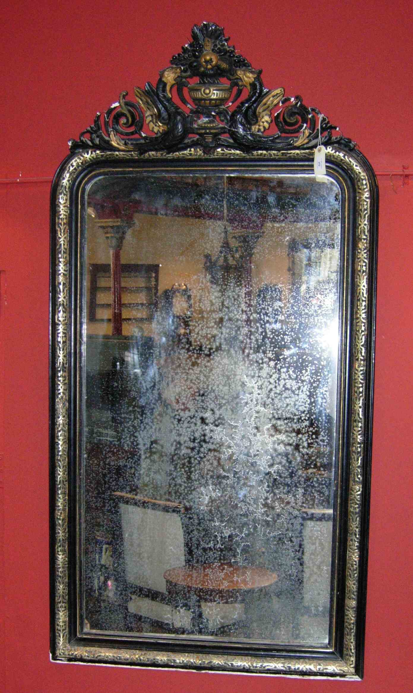 A 19th century ebonised and parcel-gilt pier mirror