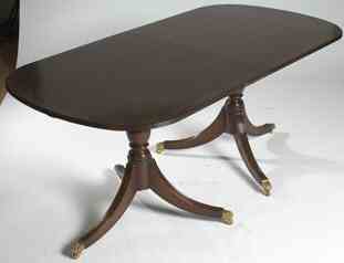 in the Regency manner, the rounded rectangular top with reeded edge and two additional leaves on plain baluster supports and downswept reeded tripod bases ending in brass claw caps and castors, with alterations and restorations