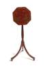 the octagonal top with snap-over action and reeded edge decorated with riverside pagodas and birds, on a slender spirally fluted baluster column and downswept tripod base painted with trailing foliage, ending in giltwood ball feet