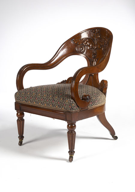A Regency period mahogany Grecian style library chair In the manner of Gillows of Lancaster