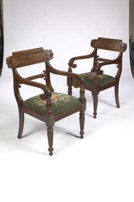 A pair of Scottish Regency period mahogany carver armchairs In the manner of William Trotter of Edinburgh