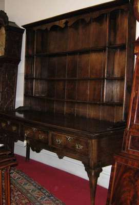 A George III period oak and crossbanded dresser and rack