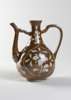 the cafe au lait ground with opposed relief cartouche panels with stylised white glazed flowers and scrolls