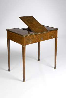 A Louis XVI period walnut, tulipwood, harewood and marquetry poudreuse, circa 1790