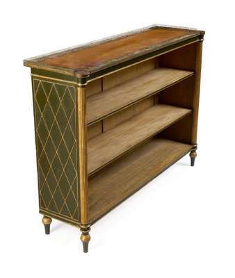 A late George III period painted satinwood and tulipwood crossbanded low bookcase, circa 1790