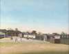 each depicting figures in front of palace buildings and gates, famed and glazed (4)
