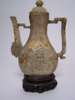 with Greek key border, relief carved with Chinese character marks and flowers (damages), on a later hardwood stand