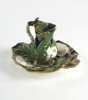each moulded in high relief with bullrushes and branches, painted with shaped reserves of exotic birds and shell motif, against gilt enhanced cobalt blue ground, interlaced blue L marks, saucer bears paper label 'Coleccion SANTARELLI, Buenos Ayres' (2)