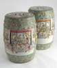 each profusely decorated with flowers on a green ground and with opposed rectangular panels painted with ladies in domestic settings, surrounded by bossed borders (2)