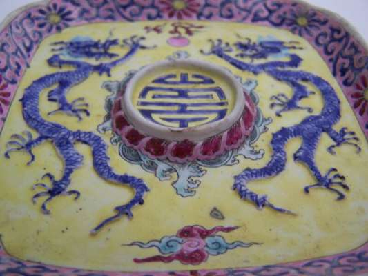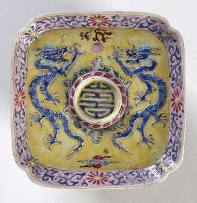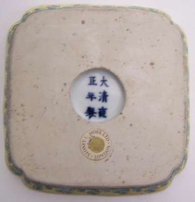 A small Chinese porcelain canted square stand Yongzheng mark and period