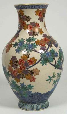 of baluster form, decorated with polychrome leaves and branches, above rockwork and waves