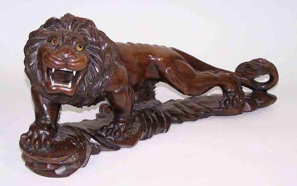 A Chinese hardwood roaring lion ALTERATION not Japanese
