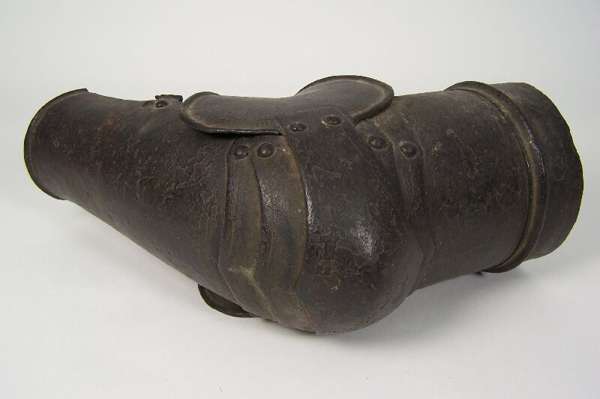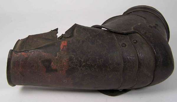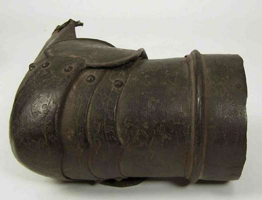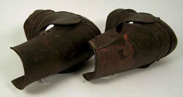 A pair of 17th century German cuirassier's patinated iron vambraces