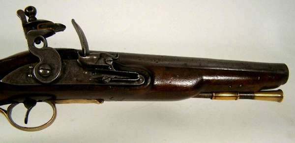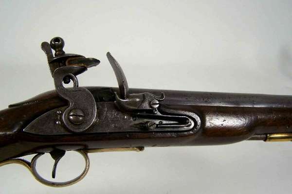 flat border engraved lock engraved WR crowned, flat border engraved ring neck cock, plain large bore barrel with kings proof marks at breech, full walnut stock stamped with arrows and large number 39 forward of the brass trigger guard XVI with regulation brass mounts the butt cap stamped BO for Board of Ordnance side plate stamped B2 single brass ramrod pipe with original brass tipped ram rod