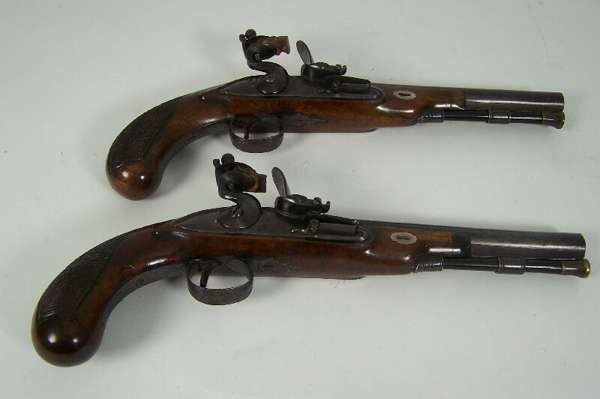 A pair of late 18th century flintlock duelling pistols