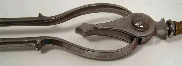 A set of three early Victorian brass and steel fire irons