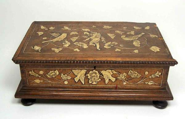 An early 18th century Northern Italian walnut and bone inlaid box