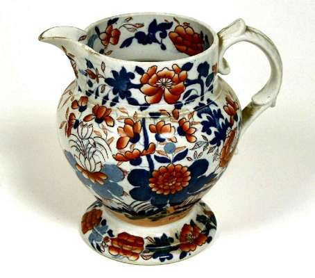of globular form with scroll handle and spreading foot, decorated in the 'Japan' pattern, blue printed mark