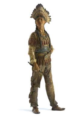 realistically cast and painted holding a peace pipe in his right hand, stamped GESCHUTZT