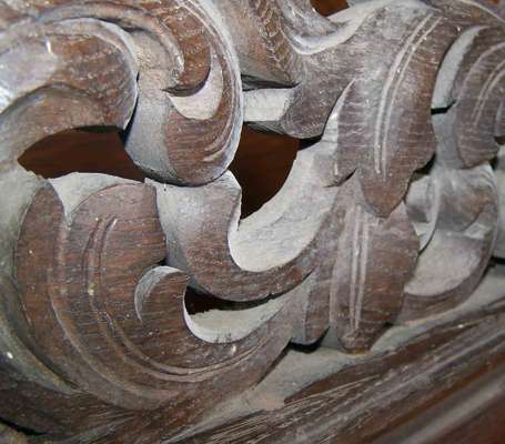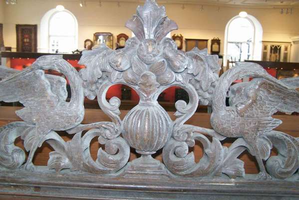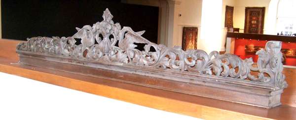 each composed of a rectangular cornice surmounted by boldly carved acanthus scrolls surmounted by festooned urns flanked by ho-ho birds (4)