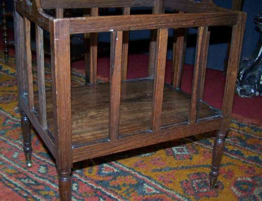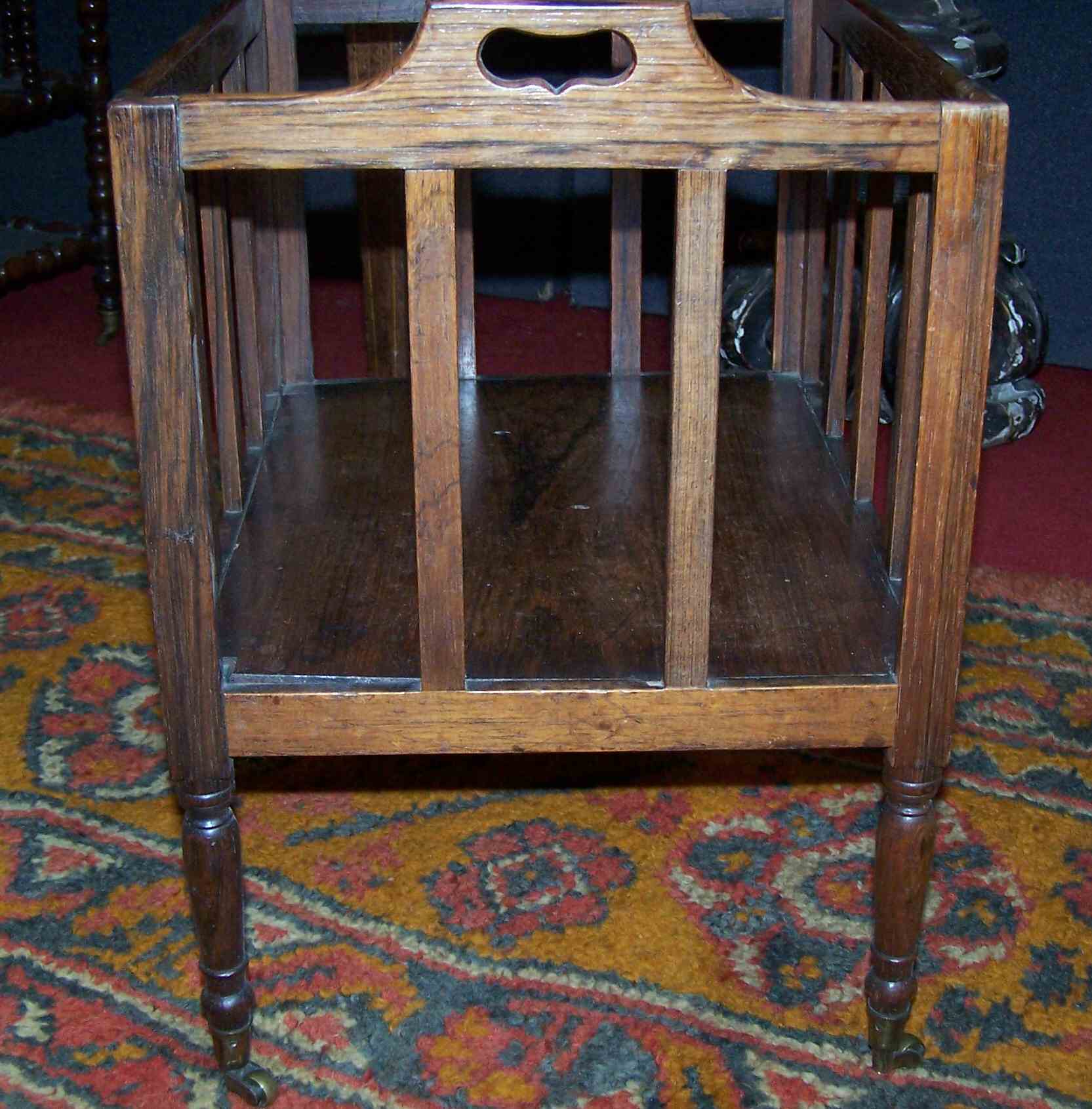 with spar filled sides and inlet handles, on slender turned legs with brass socket castors