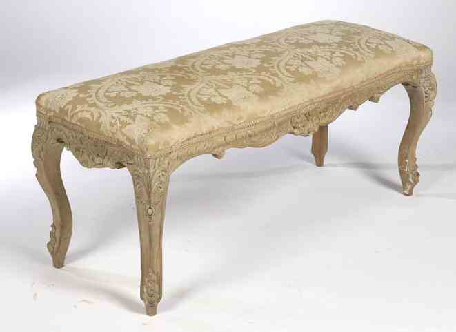 A 19th century bleached walnut long dressing stool In the Louis XVth manner