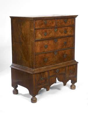 An early 18th century walnut and crossbanded chest on stand