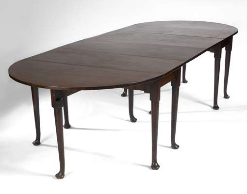 the rounded rectangular top above a plain frieze, raised on turned tapered legs ending in pad feet