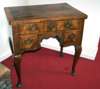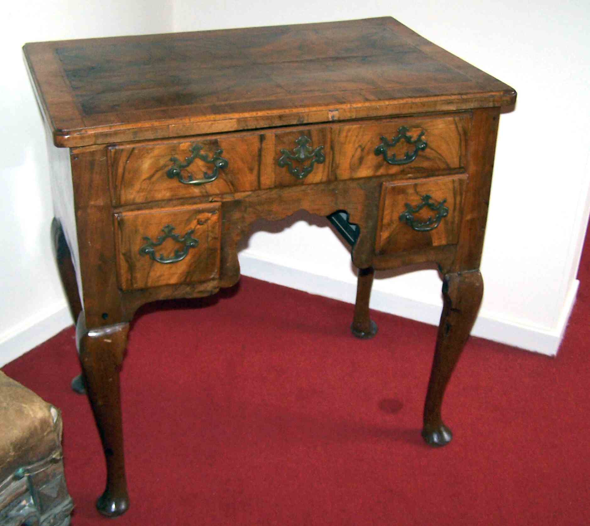 the rectangular top above a frieze drawer and a kneehole bounded by a pair of lipped short drawers, on cabriole legs with pad feet