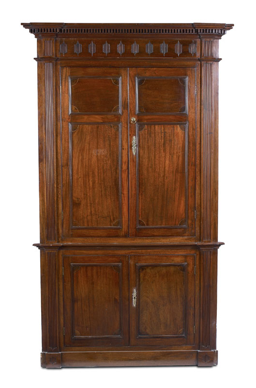 A George III period mahogany standing corner cupboard