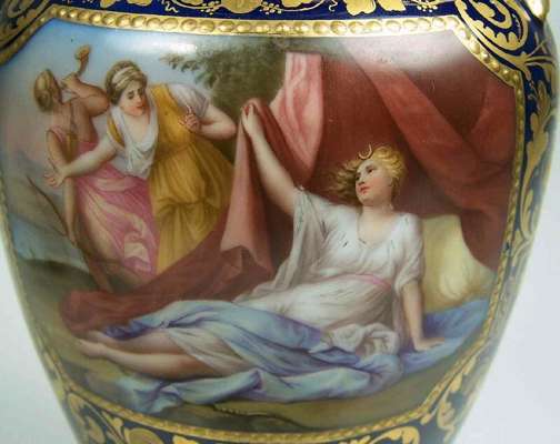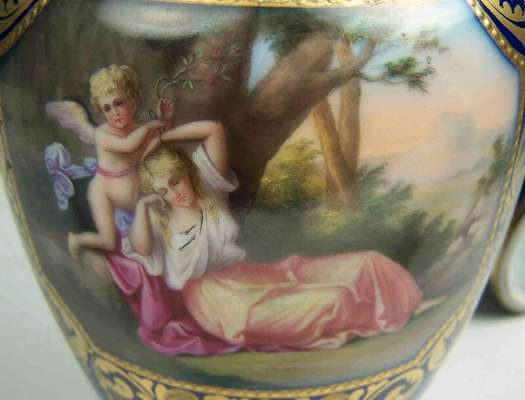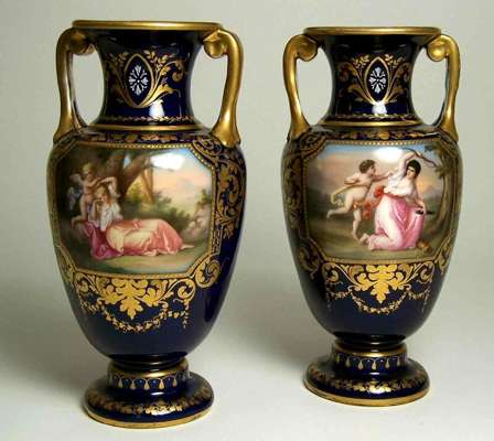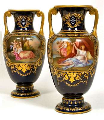 A pair of late 19th century Vienna twin handled vases