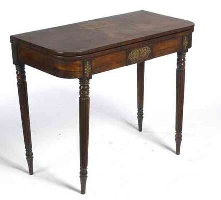 A Regency period rosewood and cut brass inlaid fold over games table