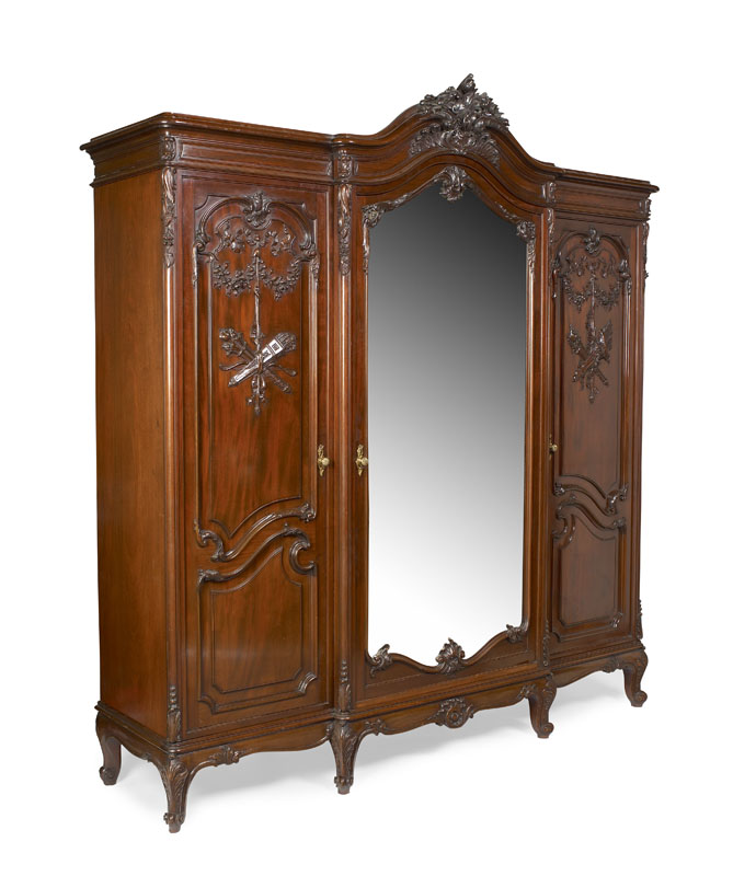 A Victorian mahogany breakfront wardrobe In the French rococo taste
